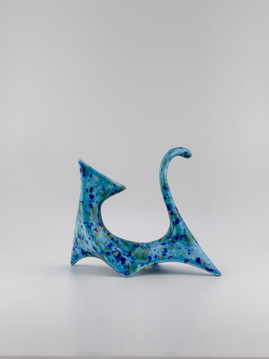 Modern Cat / Turquose with Dark Blue, Green, Yellow Crystals / Left