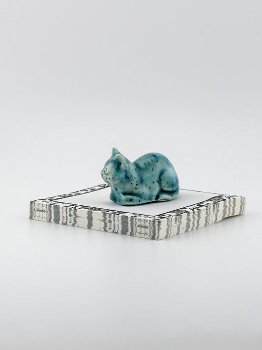 Modern Cat / Turquose with Dark Blue, Green, Yellow Crystals / Left