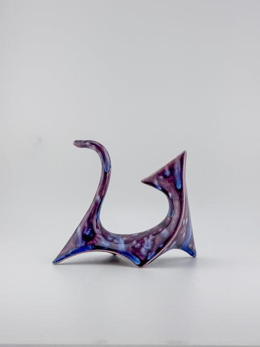 Vibrant mid-century modern ceramic cat, revived from a 1960s mold restored by hand. Glossy, sculptural, and timelessly playful with a family heritage.!!