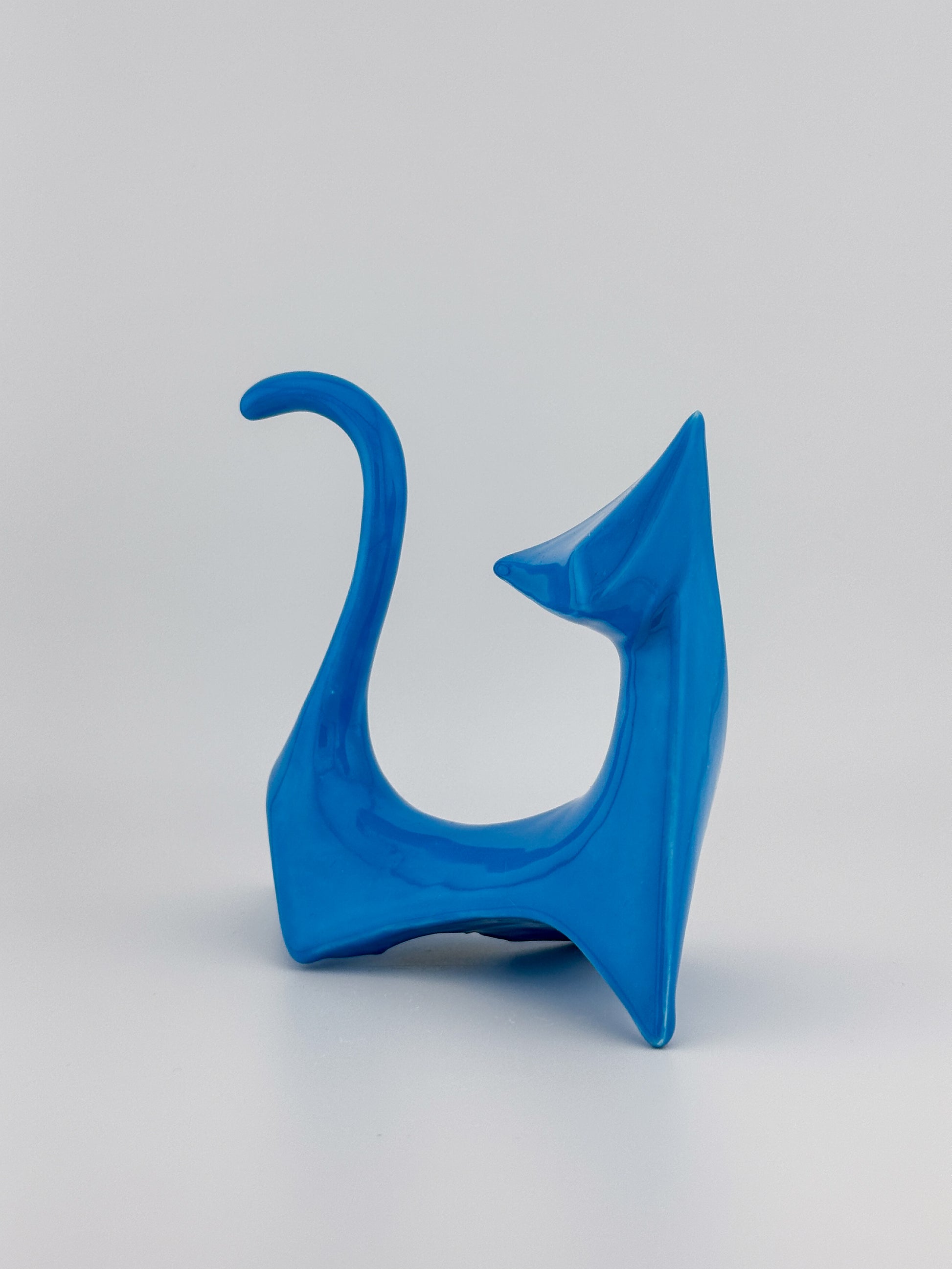 This striking modernist ceramic cat is a revival of a 1960s original, crafted using molds passed down from my grandmother. After decades of wear, the molds had begun to deteriorate, but I painstakingly restored and recreated them to preserve this iconic design. For nearly 20 years, I’ve been making and refining these sleek cats, ensuring each one captures the bold curves and playful elegance of the original mid-century form.