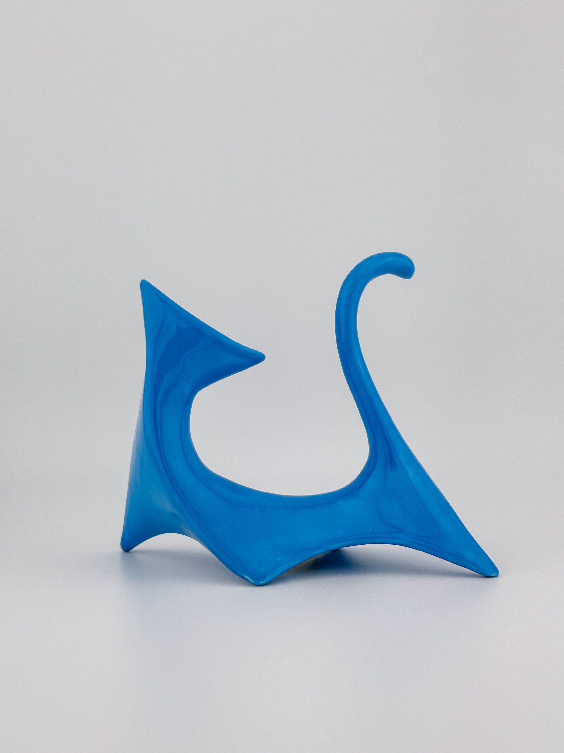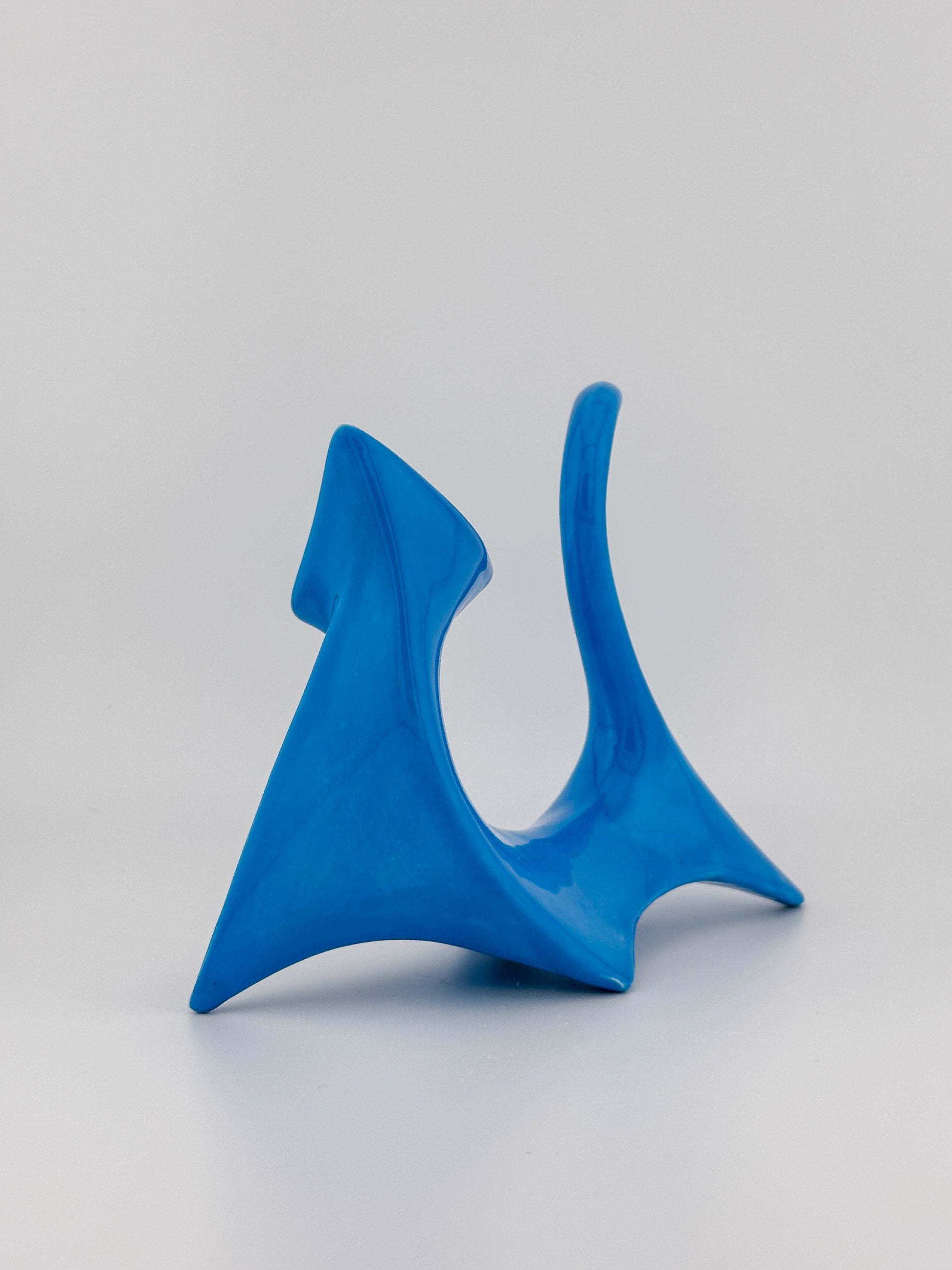 Finished in a vibrant, glossy blue glaze, this sculptural piece stands out on shelves, desks, or mantels. Equal parts vintage charm and modern art, it’s a timeless tribute to family tradition and design history.