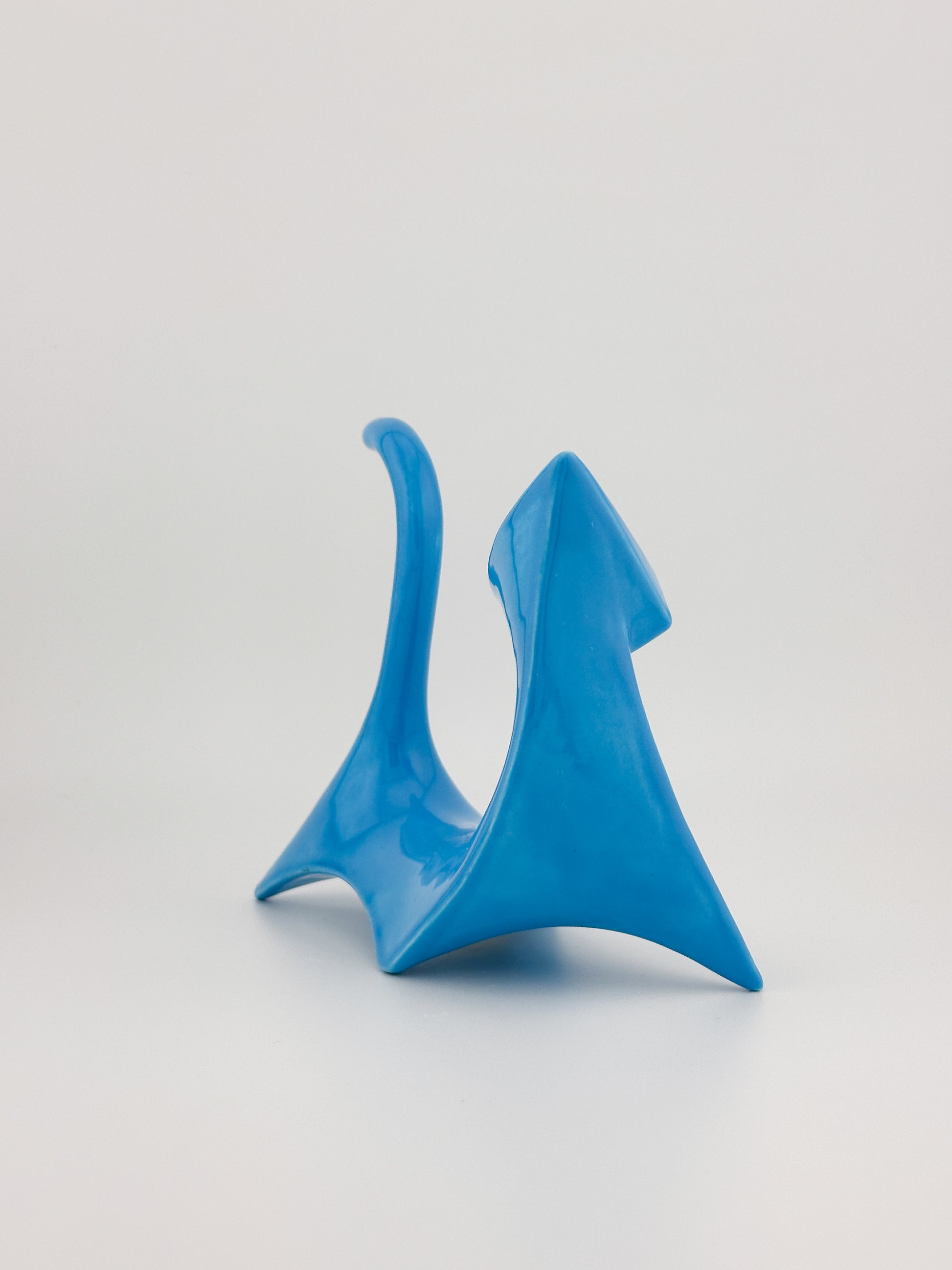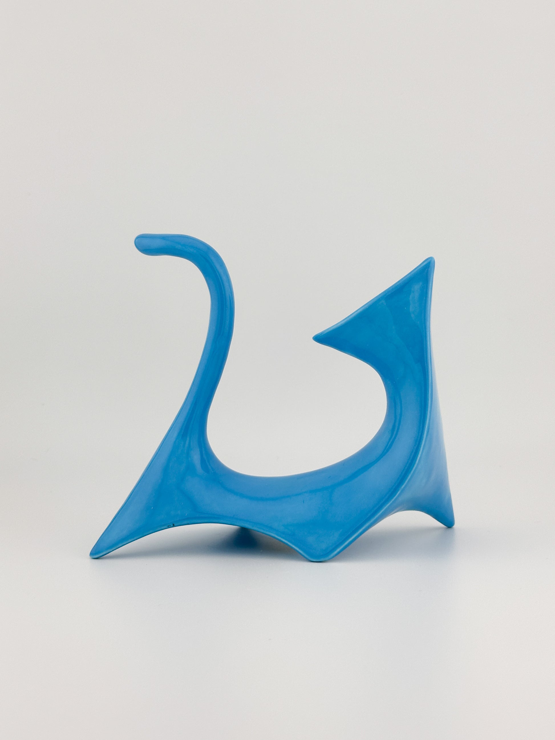 Finished in a vibrant, glossy blue glaze, this sculptural piece stands out on shelves, desks, or mantels. Equal parts vintage charm and modern art, it’s a timeless tribute to family tradition and design history.