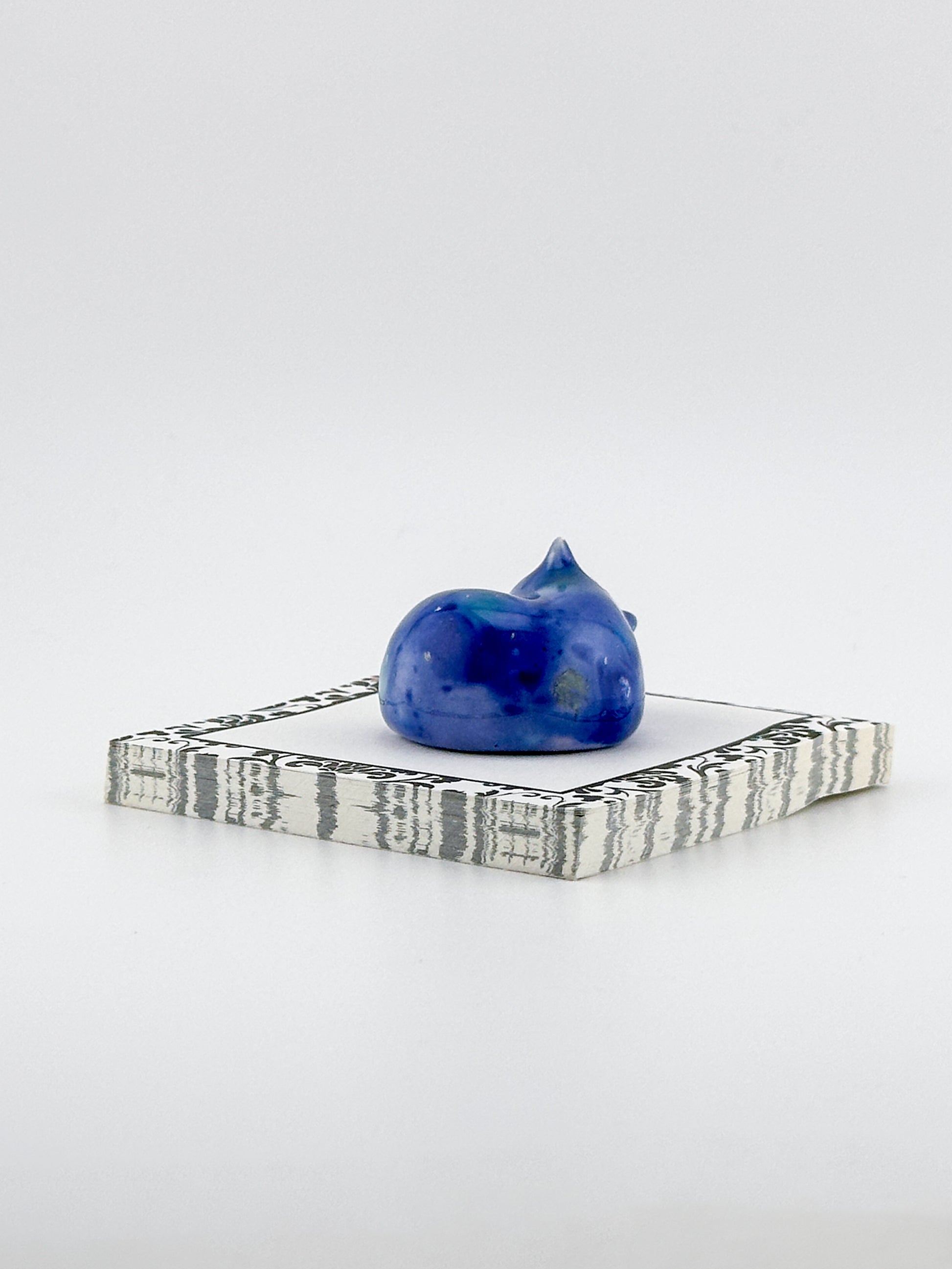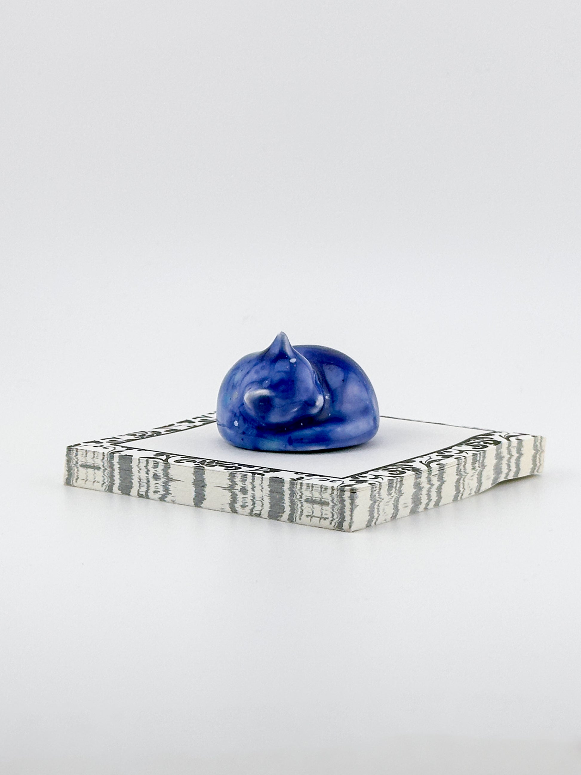 Add a touch of charm to your collection with this petite, handcrafted ceramic cat figurine. Measuring approximately 1.5 inches long and just over 1 inch tall, this adorable feline is curled up in a relaxed pose, exuding peaceful energy and calm.