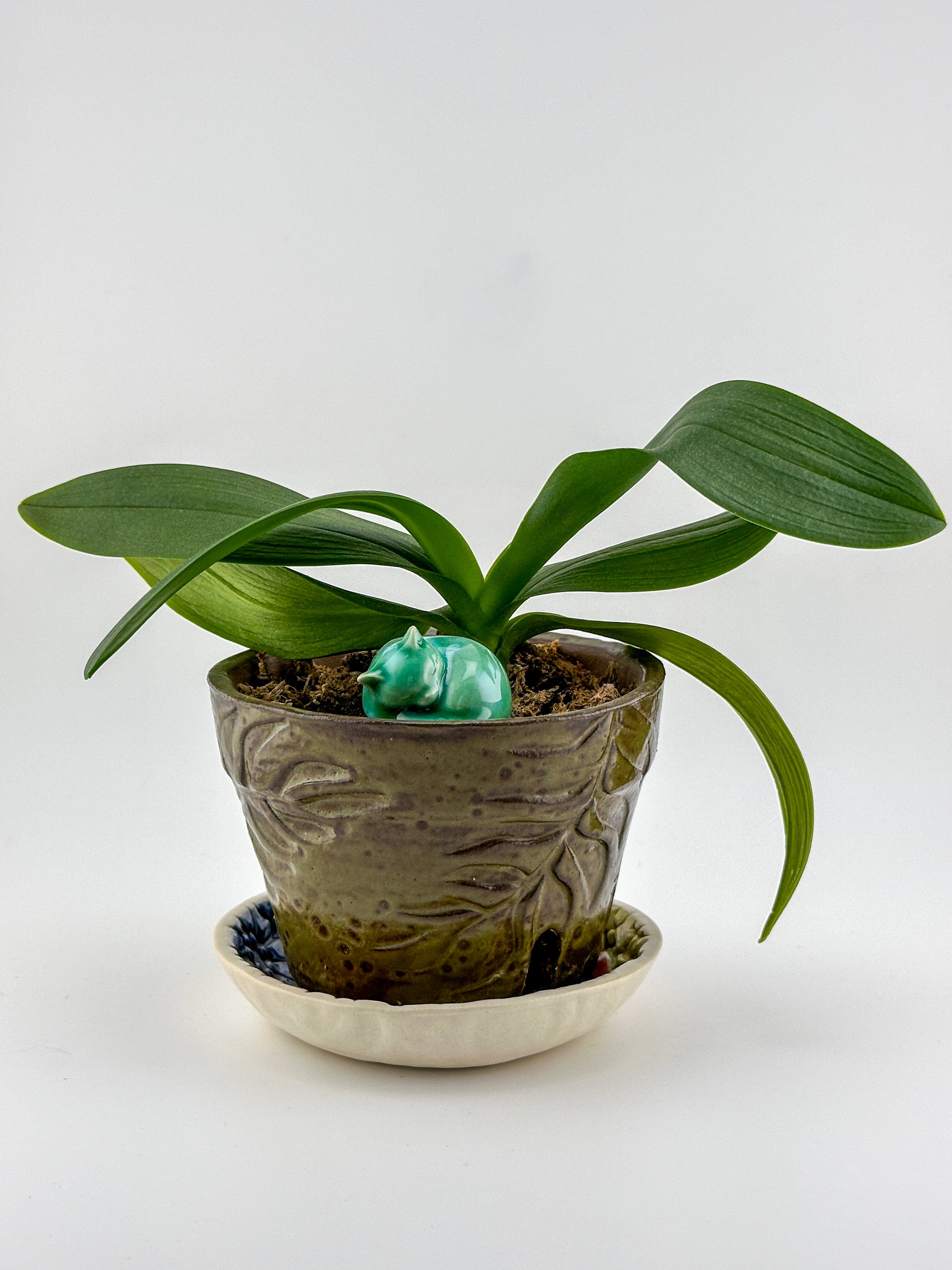 Little Sleeping Cat / Green with White Crystal