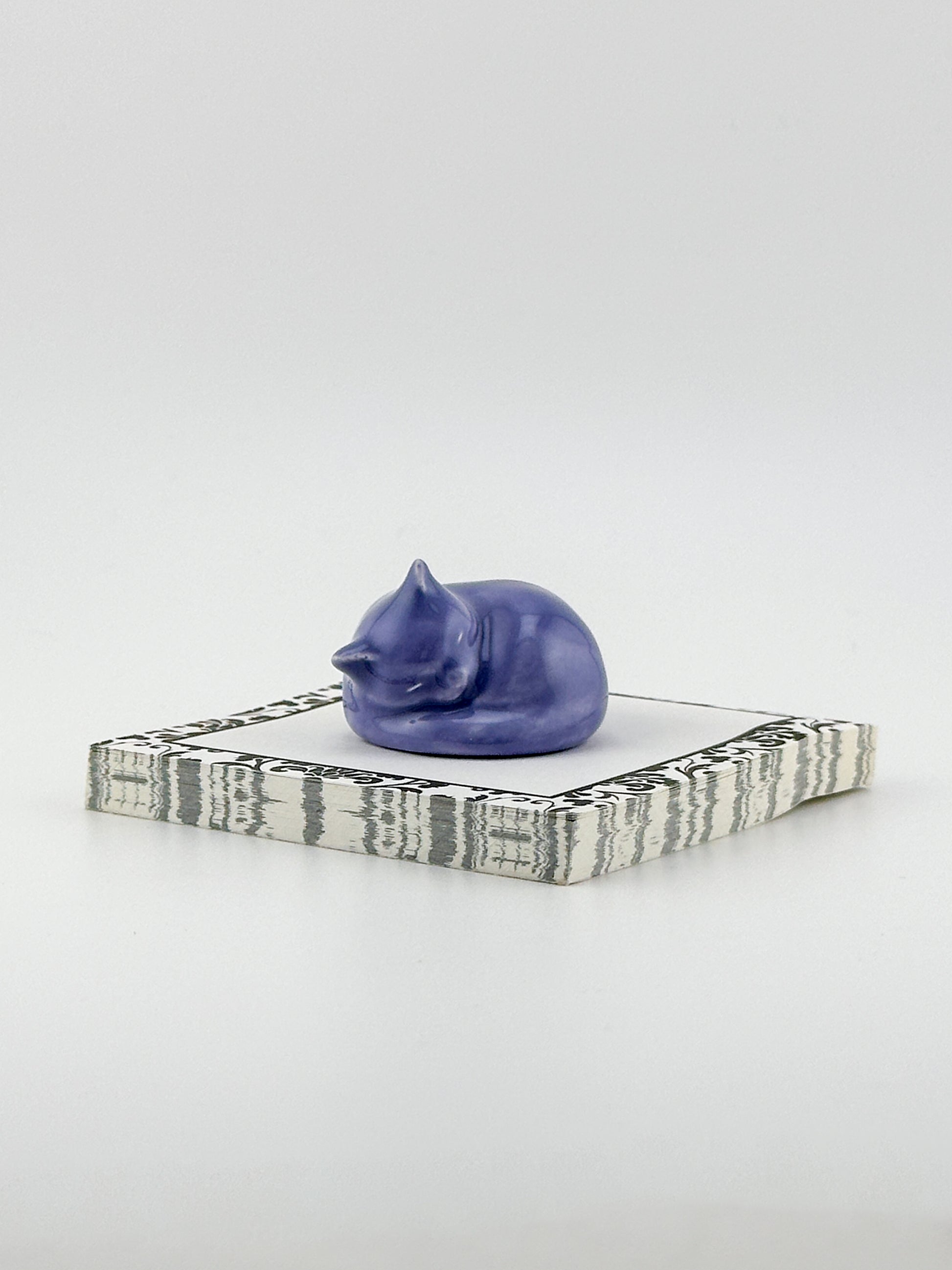 Add a touch of charm to your collection with this petite, handcrafted ceramic cat figurine. Measuring approximately 1.5 inches long and just over 1 inch tall, this adorable feline is curled up in a relaxed pose, exuding peaceful energy and calm.