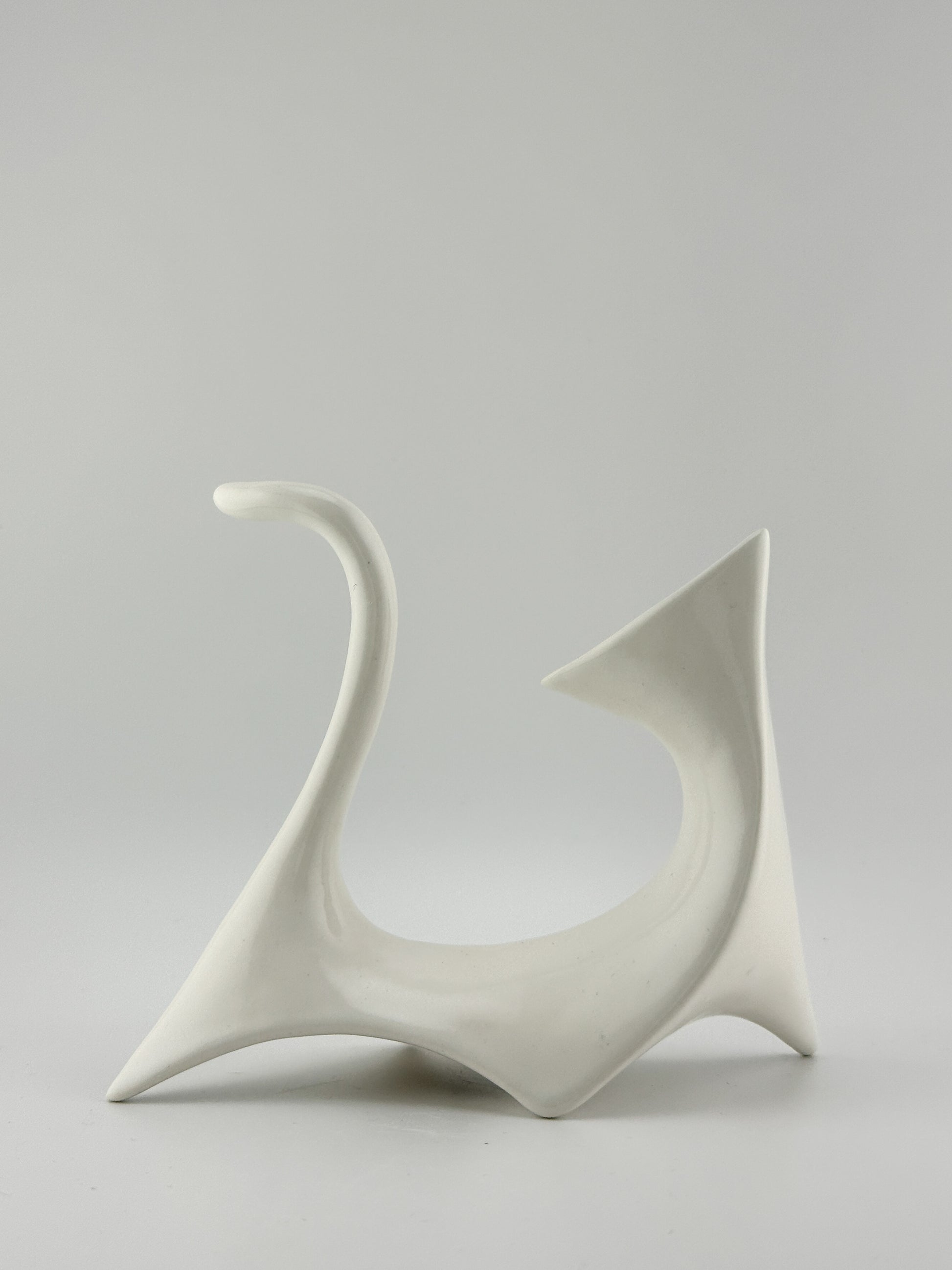 This striking modern ceramic cat is a revival of a 1960s original, crafted using molds passed down from my grandmother. After decades of wear, the molds had begun to deteriorate, but I painstakingly restored and recreated them to preserve this iconic design. For nearly 20 years, I’ve been making and refining these sleek cats, ensuring each one captures the bold curves and playful elegance of the original mid-century form.