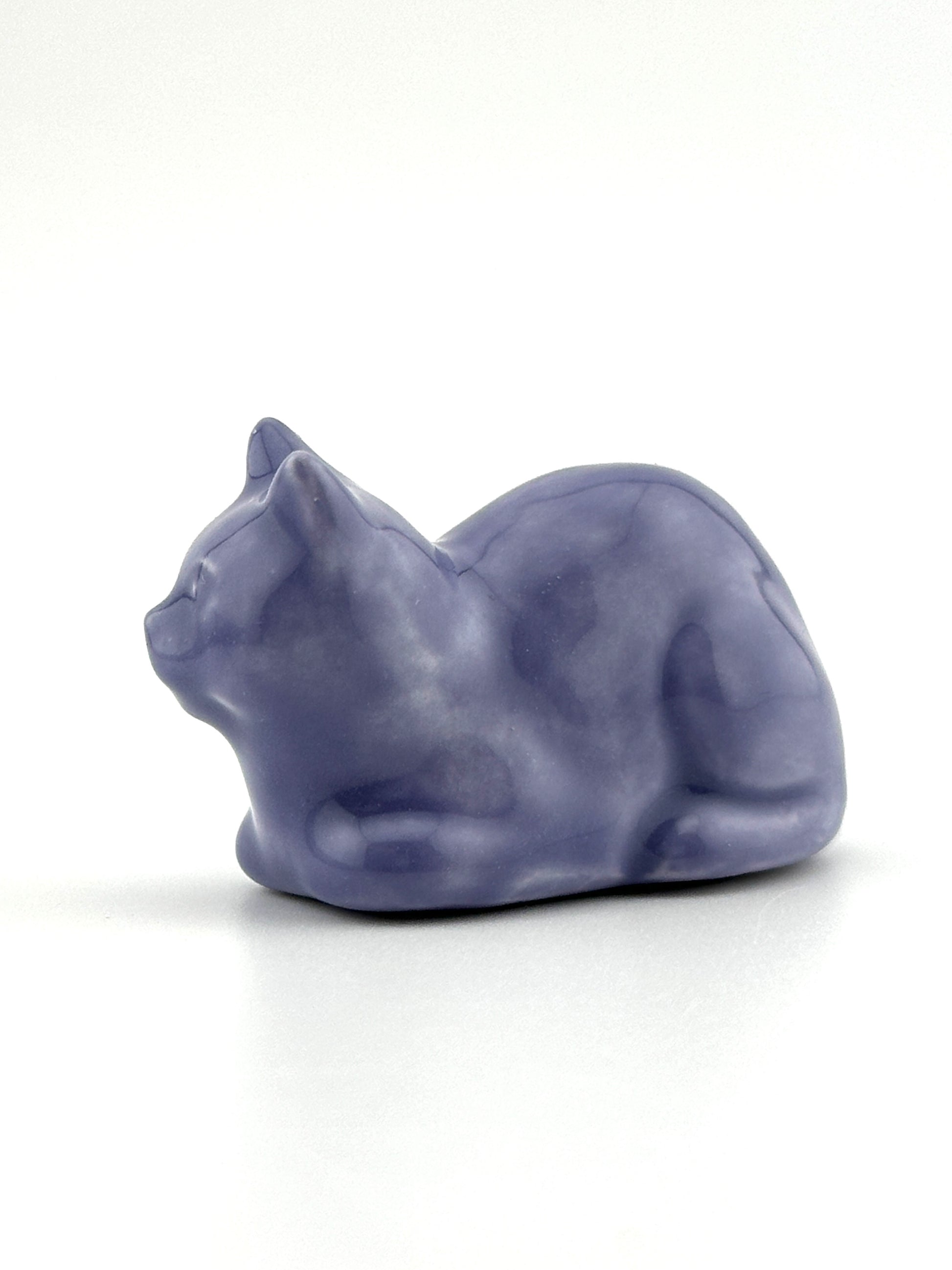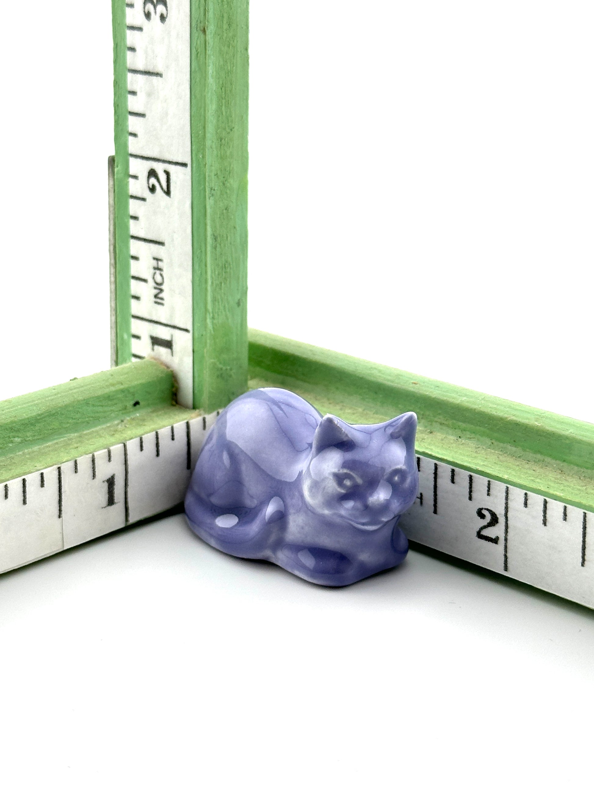 Add a touch of charm to your collection with this petite, handcrafted ceramic cat figurine. Measuring approximately 1.5 inches long and just over 1 inch tall, this adorable feline is curled up in a relaxed pose, exuding peaceful energy and calm.